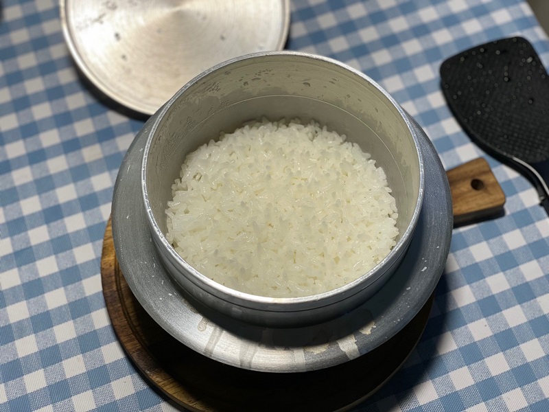 翌朝、やはり暑い中起床し、あまり気温が上がる前に撤収したかったので早めに朝食を摂ります。