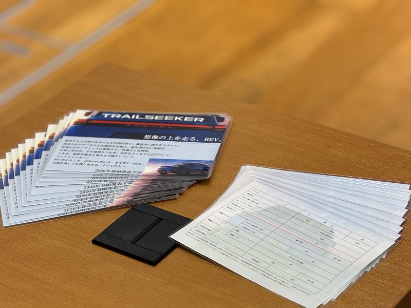 ショールームで実際にお話を伺ってみると「トレイルシーカーって何?」とか「ああアレね!」とか、皆さまの反応も様々ですが、ソルテラに続くBEV第2弾として登場予定の新型車です!