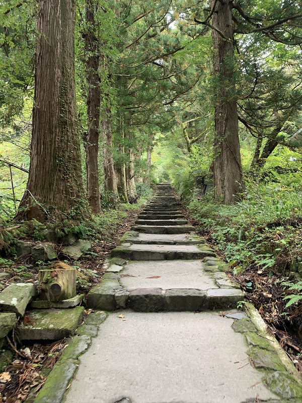 最初は、石段を登っていき、途中から木の階段に変わっていきます。