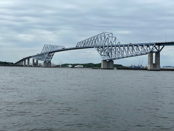 桁下を大型の船舶が通過できるよう、また羽田空港から離発着する航空機に影響が出ないよう、様々な制約の中で採用された鋼3径間連続トラスボックス複合構造は見る者を魅了します。