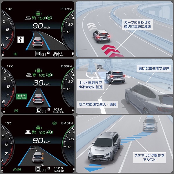 高剛性のボディや電子制御ダンバーがもたらす快適な乗り心地は身体への負荷が少なく、一度高速道路に入ればアイサイトXでアクセル・ブレーキペダルの操作から解放され、ハンドルに軽く手を添えておけば直進もカーブも、そこそこの曲率のジャンクションさえもステアリング操作をアシストしてくれます。