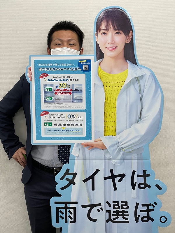 今年の1月より横浜ゴムさんがCMに起用されたそうで、高知東店のショールームにも吉岡さんがいらっしゃいます。