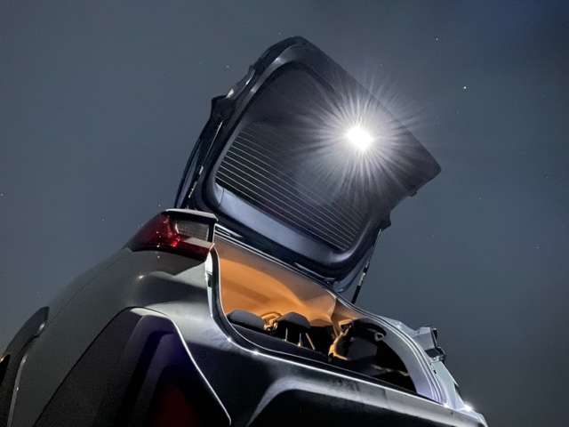 3年ぶりの望遠鏡の組み立てに戸惑いもありましたが、リヤゲート上から手元を明るく照らしてくれるのでなんとか組み上げられました。キャンプや釣りなどの夜間作業にも重宝しそうです。