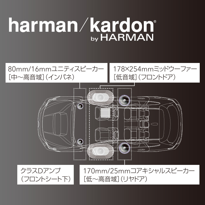 結果的にハーマンカードンサウンドシステム装着車はスピーカーが美しい音を奏でるだけでなく空間そのものも音楽を存分に愉しめるような静粛性を有しており、その副産物として乗る方すべてにとって不快な音が少なく車内の会話を愉しめるようになっています。