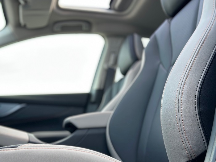 流行のアッシュカラーを採用したシートにはカッパーステッチが華やかに映えており、おおらかさと高級感を演出しています。