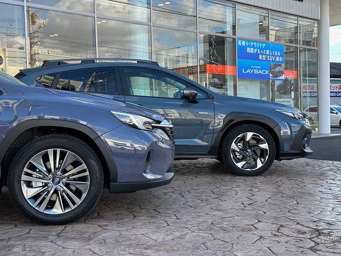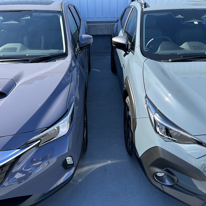 レイバックのイメージカラーであるアステロイドグレー・パールと、同じくクロストレックのイメージカラーであるオフショアブルー・メタリックを並べてみました!