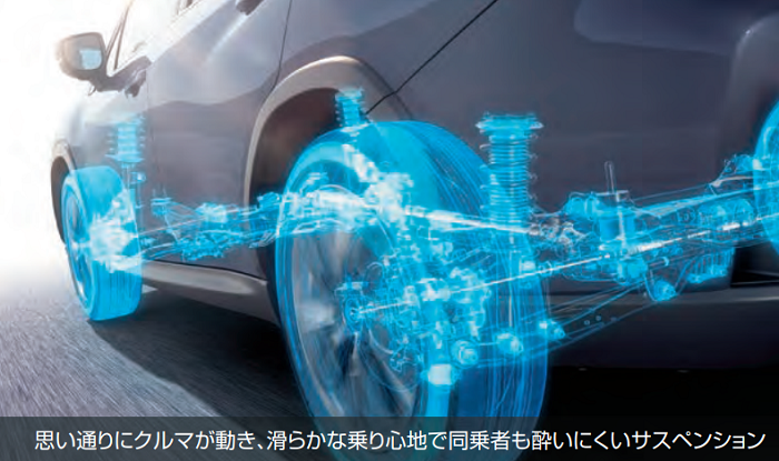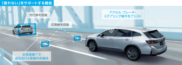 レイバックの2ピニオン電動パワーステアリングは路面の状況に左右されにくく、高い剛性を誇るスバルグローバルプラットフォーム×フルインナーフレーム構造も相まって高い直進安定性を実現します。