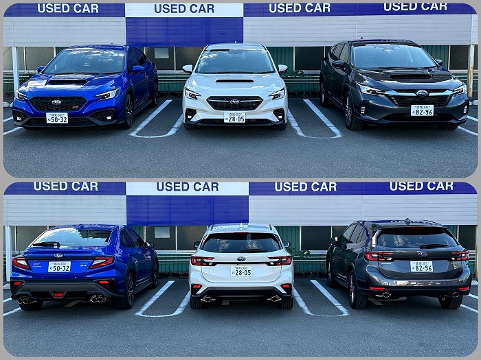 先日のこと、高知東店の駐車場に偶然SUBARUのV系三姉妹の試乗車が揃っておりました。※ここでいうV系とはヴィジュアル系ではなくレヴォーグ(VN5&VNH)・レイバック(VN5)・WRX S4(VBH)の型式のことです。