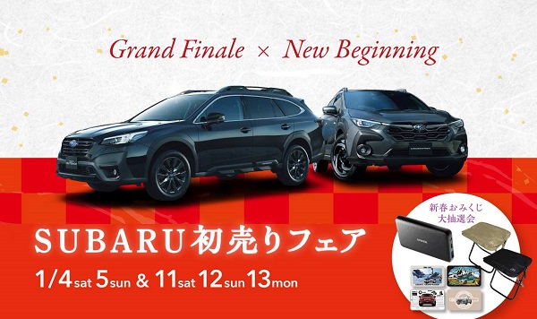 日頃のご愛顧への感謝を込めてス高知東店では、1月4日(土)~13日(月・祝)の期間中、新年最初の「SUBARU初売りフェア」を開催いたします。