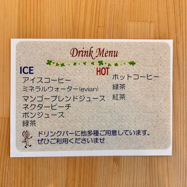 もし機械の中で気になる飲み物が無かった場合、スタッフからこちらのドリンクを提供できますので、お声がけください↓ ↓