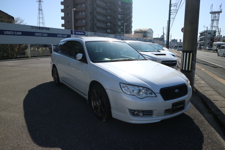 サテンホワイトパールのレガシィツーリングワゴン3.0Rです!