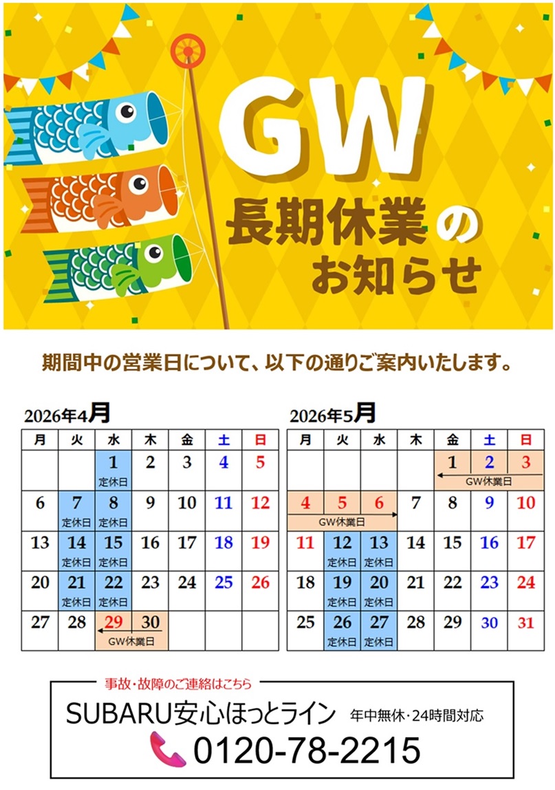 ご迷惑をおかけしますが、事故や故障の際にはSUBARU安心ほっとラインまでご連絡をお願いいたします。