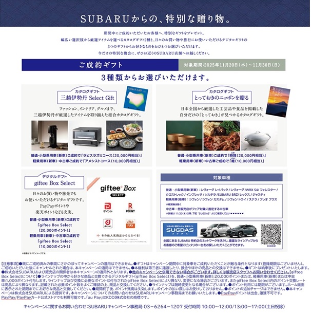 期間中に対象車種をご成約いただきますと、素敵なギフトを選ぶことができます!(*’ω’*)