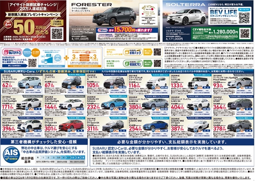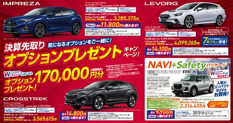 先日までの2週間、スバル中四国は新春初売りフェアを行っていましたが、